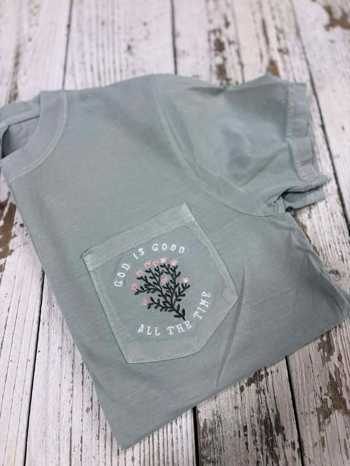 God Is Good All The Time Embroidered Pocket T-Shirt