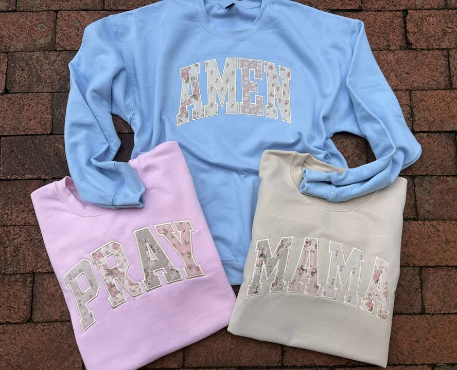 Vintage Florals Amen + Pray + Mama Appliqued Crewneck Sweatshirt